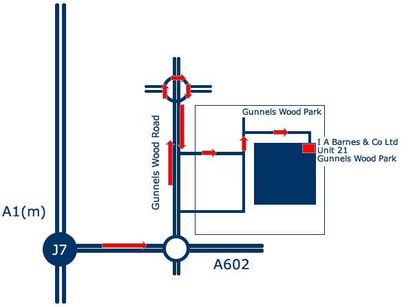Exit the A1(M) at Junction 7 (Stevenage South), take Stevenage exit, turn left onto Gunnels Wood Road. At next roundabout come back on yourself back up Gunnels Wood Road, The entrance to the Gunnels Wood Park is on the left. If you prefer you can use Google maps.